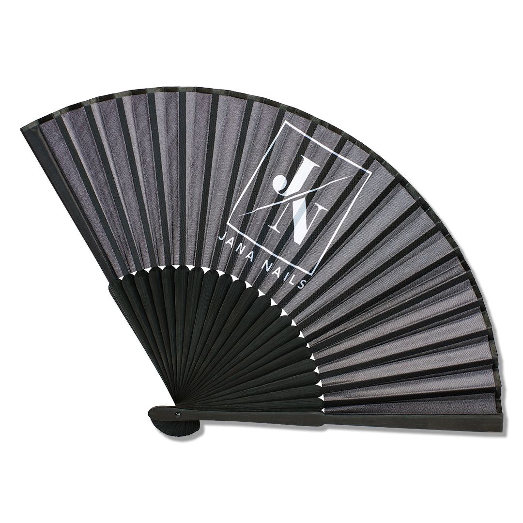 Le complément d'été parfait pour les journées chaudes - l'éventail JN. Extrêmement léger mais de haute qualité, il est fabriqué en polyester durable, ce qui en fait un choix durable et élégant pour toutes les occasions. 🌞🖤