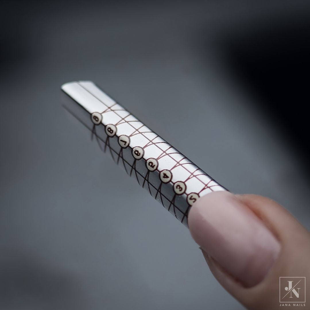 Découvrez notre nouveau moule à ongles en aluminium extra résistant redessiné. En plus du tout nouveau design, de notre nouveau look et de nos couleurs dégradées reconnaissables, ce moule en papier comporte des marquages et des guides supplémentaires pour rendre votre travail encore plus facile, plus rapide et plus précis.